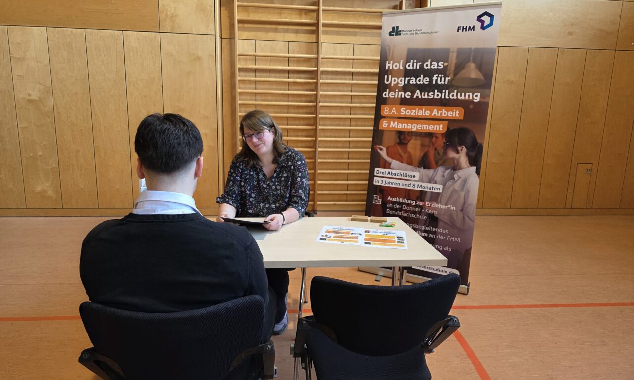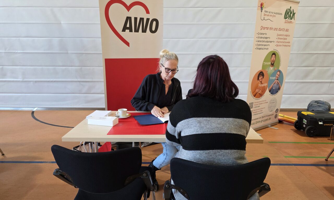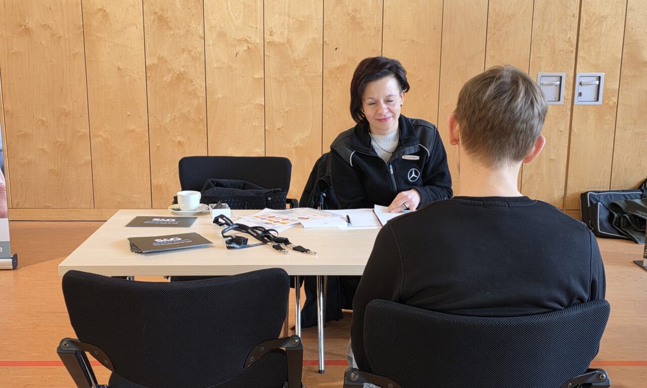 Da herrschte Aufregung unter den Jugendlichen, weil sie mit ihren Unterlagen allein an den Unternehmensplatz gehen und sich dort vorstellen mussten. Im Takt von etwa einer Viertelstunde folgte die nächste Bewerberin bzw. der nächste Bewerber. Die Unternehmen stellten Fragen zu den Noten und gaben Auskünfte zu den Anforderungen ihrer Ausbildungsberufe.